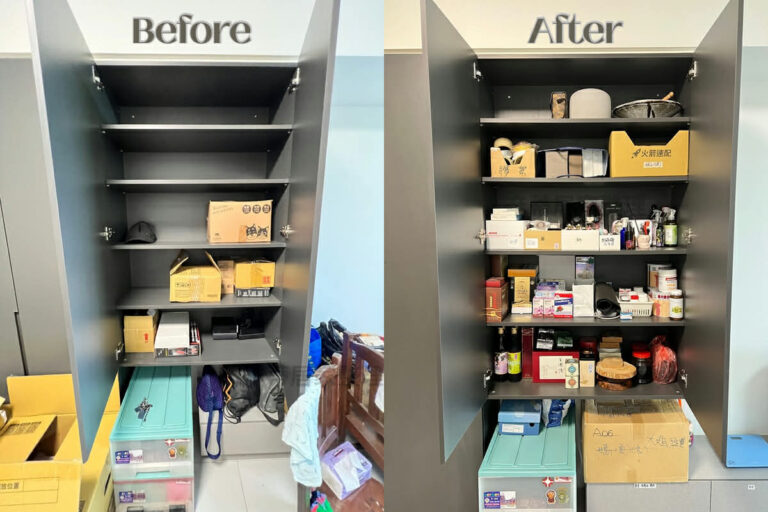 家裡層櫃空間多,所以每一個位置都塞滿滿,經過整理發現藏了很多多年用不到的物品,空間清除後心情也輕鬆了